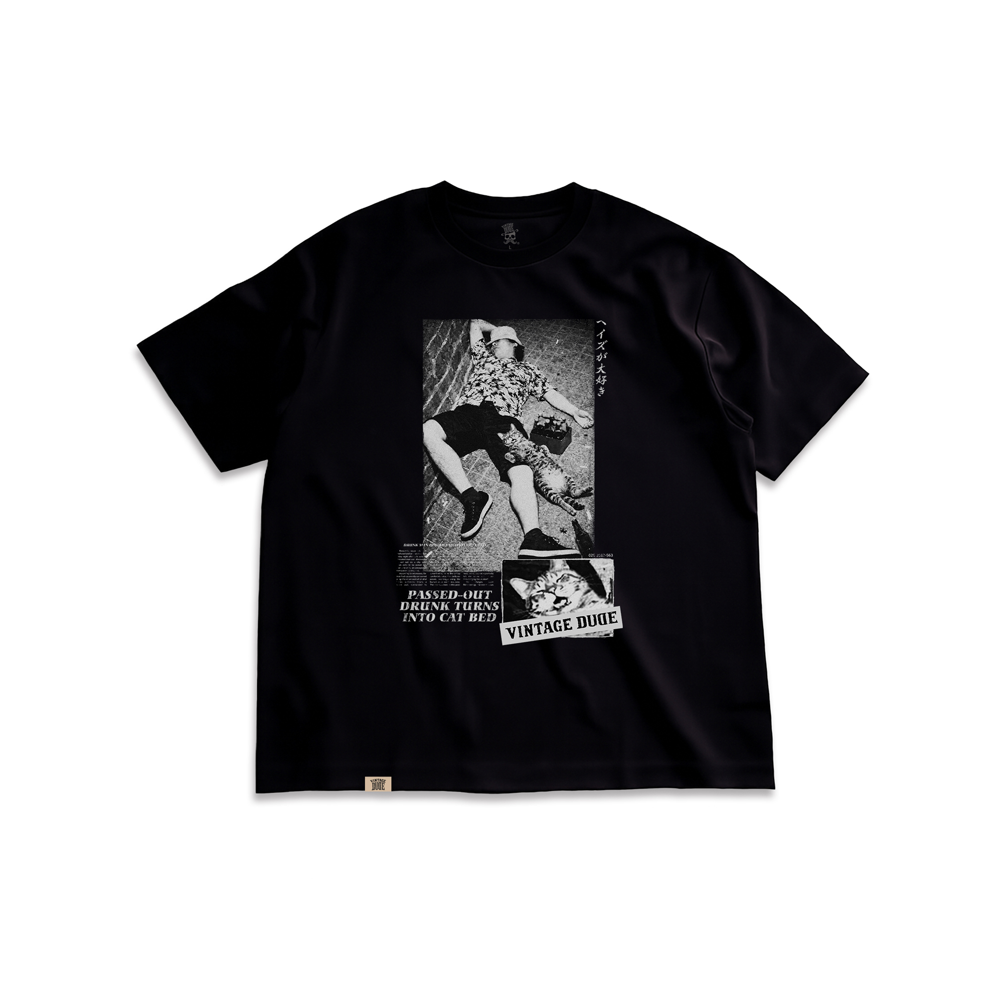 爛醉在水泥地,也能被路過的貓咪溫柔收編。